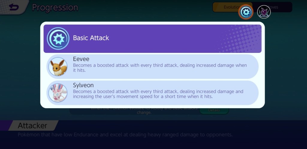 Aside from the aforementioned skills, Sylveon, like every other Pokémon in the game, has a passive ability that can be triggered automatically by meeting a condition. Sylveon’s first evolution, Evee, has a different passive to Sylveon. Eevee comes equipped with the Ability Adaptability, which boosts Eevee’s Sp. Atk for a short time whenever it deals or takes damage. Adaptability becomes Pixilate when Eevee evolves into Sylveon, increasing Sylveon’s Sp. Atk and Sp. Def for a short time whenever it deals or receives damage. Moreover, Evee and Sylveon have different basic attacks like Sylveon’s passive. Every third attack, Eevee’s basic attack becomes a boosted attack, dealing more damage when it hits. When Eevee transforms into Sylveon, its upgraded basic attacks will temporarily increase its movement speed.