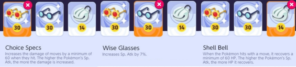 As a Special Attacker, Sylveon should focus on doing damage according to its Sp.Atk stat, hence the items it must have are those that improve Sp.Atk especially. It’s critical to consider your Pokemon’s attack type while handing them items to ensure optimal performance. Preferably, the items I hold when playing Sylveon are Choice Specs, Wise Glasses, and a Shell bell. This item set is quite offensive and can be very helpful in deleting opponents so you can score big goals without being interrupted.